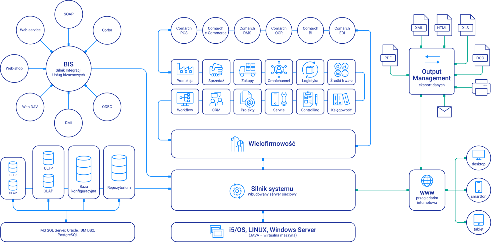 Za spójność danych i łatwość integracji z rozwiązaniami zewnętrznymi odpowiada m.in. silnik integracji usług biznesowych (BIS).