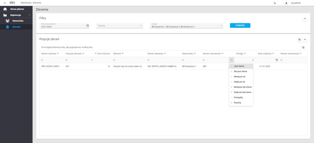 - śledzenie postępu prac – system MES pozwala na bieżąco monitorować postęp prac produkcyjnych, dzięki czemu możliwa jest kontrola procesów;